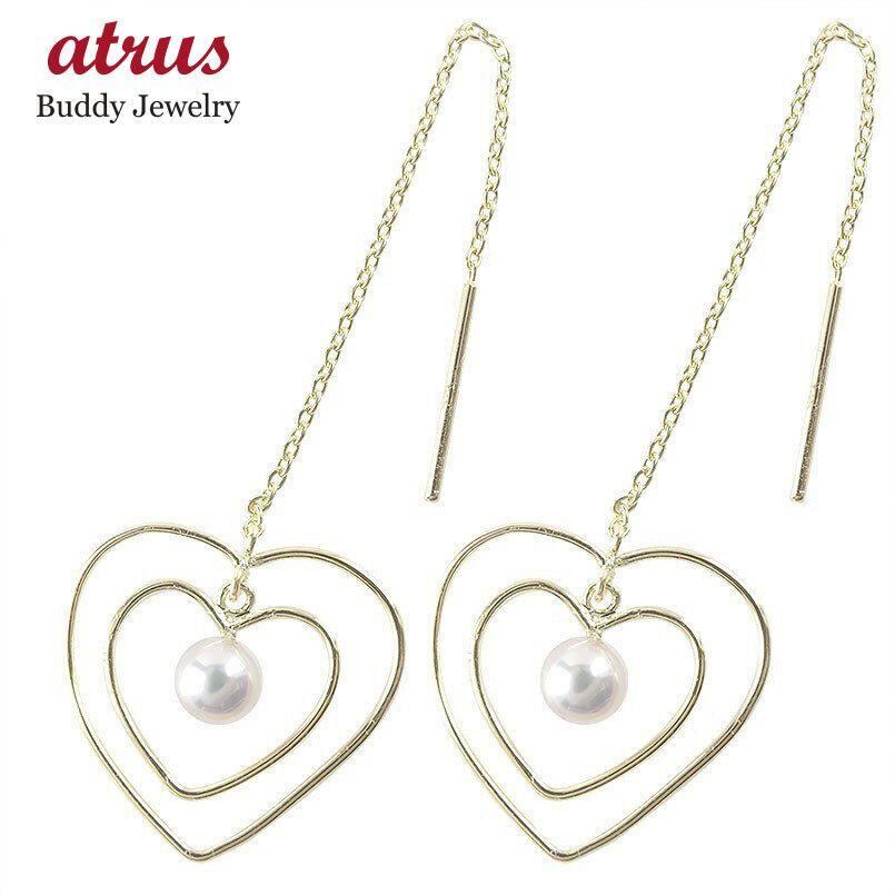 18金 ピアス レディース ハート パール ロングピアス 揺れる アコヤ真珠 アメリカンピアス イエローゴールドK18 18k おしゃれ ジュエリー 人気 送料無料