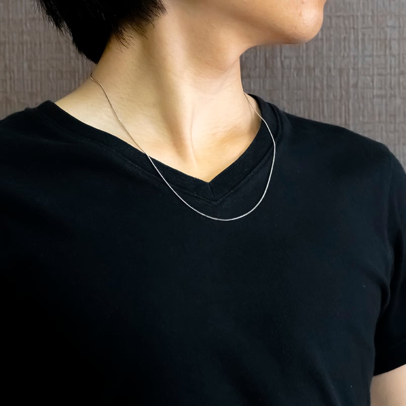 シンプルで飽きのこない喜平デザインに、純プラチナの落ち着いた輝き。
