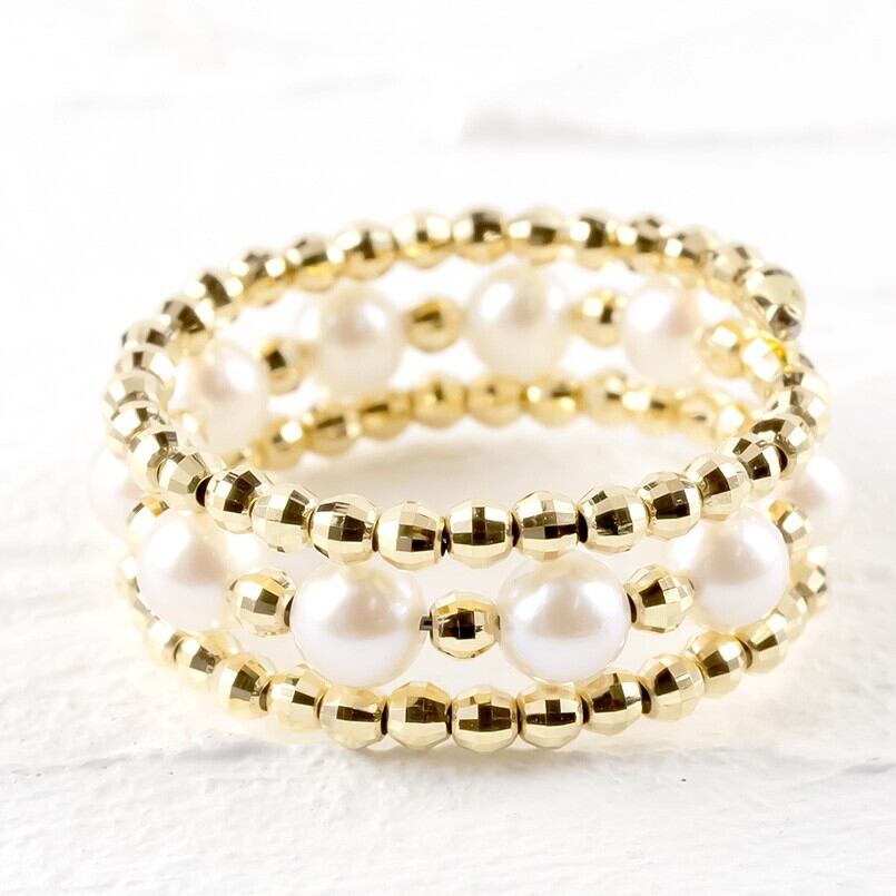 18金 リング フリーサイズ アコヤ真珠 パール 指輪 レディース ミラーボール 真珠 形状記憶 簡単着脱 ゴールド 18k イエローゴールドk18