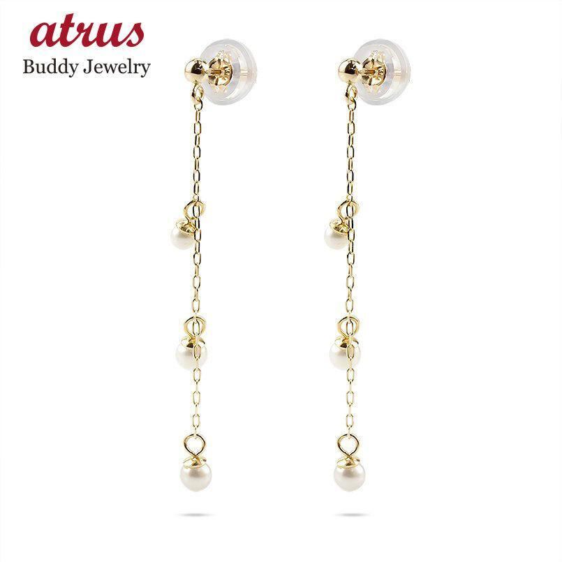 パール ピアス レディース 真珠 ペア 淡水パール イエローゴールドk10 10金 ロングピアス 揺れる フォーマル 大人 可愛い おしゃれ 可憐 人気 揺れる