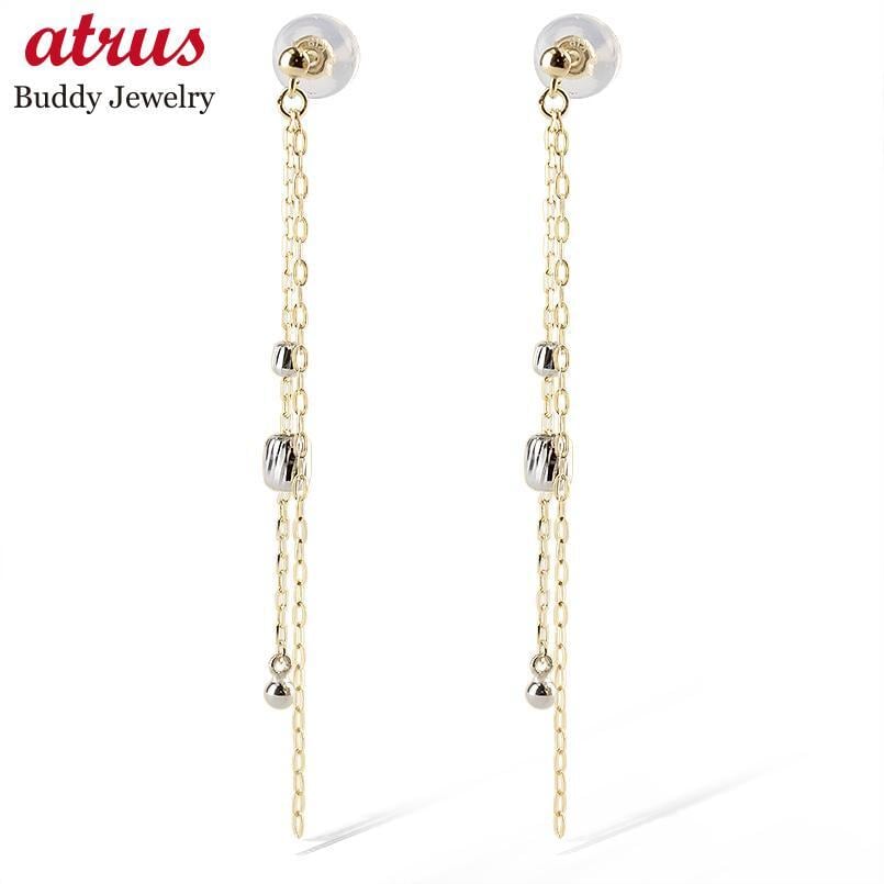 18金 プラチナ ピアス k18 レディース ゴールド ロングピアス ペア 18k コンビ シンプル K18 揺れる イエローゴールドk18 pt900 アズキチェーン 人気 ジュエリー フォーマル カジュアル 誕生日 プレゼント 記念日 贈り物 普段使い