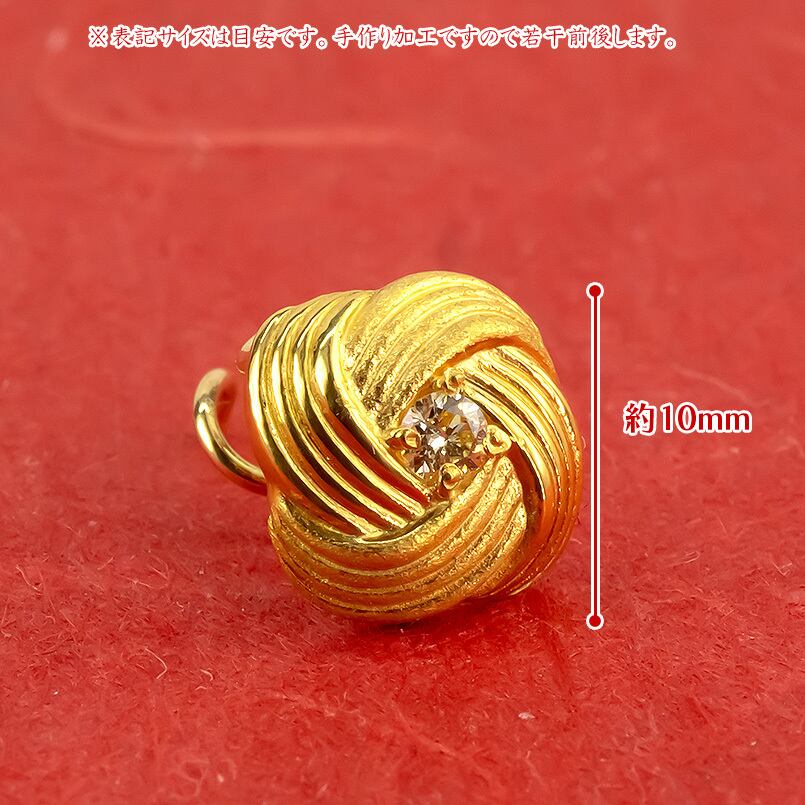 24金 純金 ピアス レディース ダイヤ 片耳 イエローダイヤモンド 水引 キャッチのいらないピアス つけっぱなし 金具は18金 イエローゴールドk18 和風 キャッチナッシャー 女性 プレゼント 人気 シンプル ギフト ジュエリー 大人 普段使い