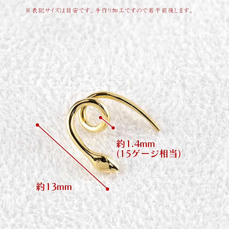 ヘビ 蛇 18金 ピアス k18 レディース 15G 片耳 スネーク つけっぱなし シンプル キャッチのいらないピアス イエローゴールドk18 キャッチナッシャー 巳年 干支 縁起物 お守り 誕生日 プレゼント 人気 普段使い